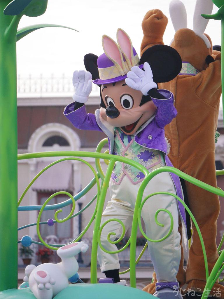 【ディズニーイースター】うさぎのポーズを決めるミッキーさん